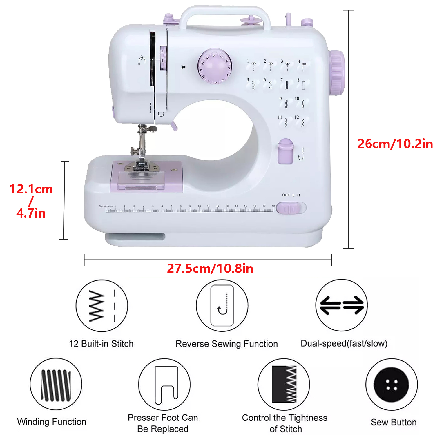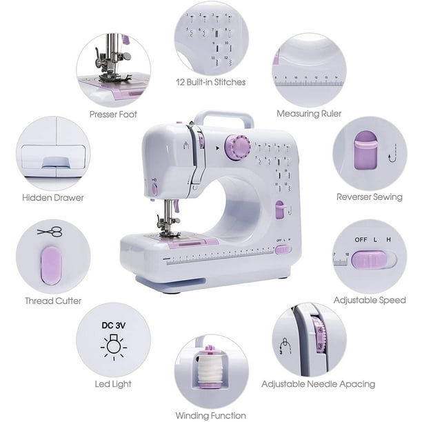 12 Stitches Sewing Machine Multifunctional Mini Portable Sewing Machine Basic Easy To Use For Adults And Kids Two Thread Lockstitch With High Low Adjustable Speeds Walmart Com