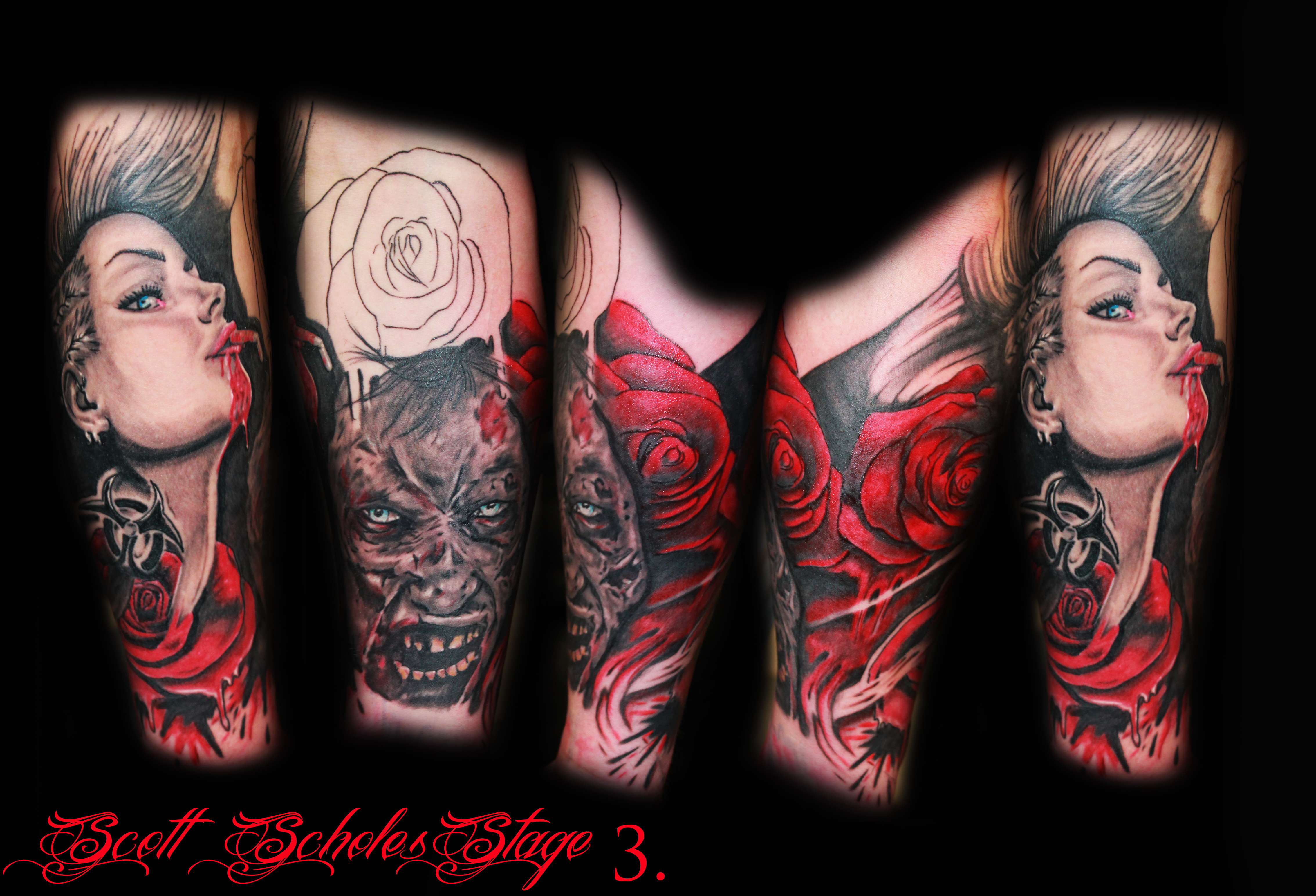 Black And White And Colour Flame Tattoos Sleeve Tattoos Cool Arm Tattoos